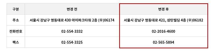 기존 아이파크콘도 리뉴얼 센터의 사무실 이전에 따라주소 및 전화번호가 변경되었습니다.